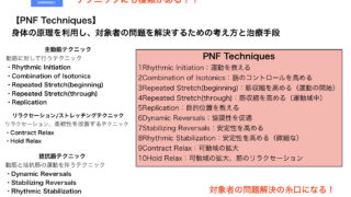 勉強会活動報告一覧 PNFのテクニックとは? PNFではテクニックという技術があります。IPNFA®︎のベーシックコースで習い、PNFで治療を行うためには必ず抑えないといけいな内容になります。 今回はテクニックの概要などについて紹介していきたいと思います。 2026.04.15 勉強会活動報告一覧